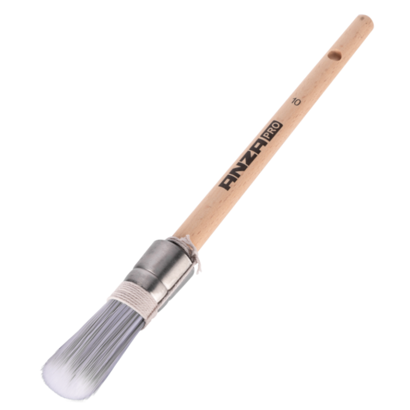 De volgegoten rvs/inox bus voorkomt insijpelen van water en/of terpentine, terwijl de kwalitatieve beukenhouten steel voor een fijne grip zorgt.