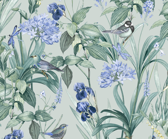 Botanique - Birds & Flowers groen/blauw