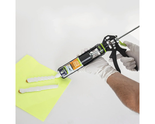 De Premium Houtrotvuller is het beste te gebruiken met de EAZYFIX® Doseerpistool, Nitril Wegwerphandschoenen, Mengplateau en de speciaal gevormde EAZYFIX® Reparatiemessen.
